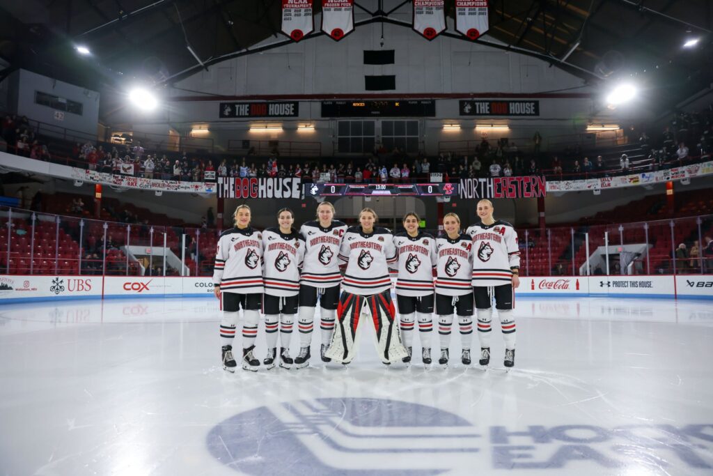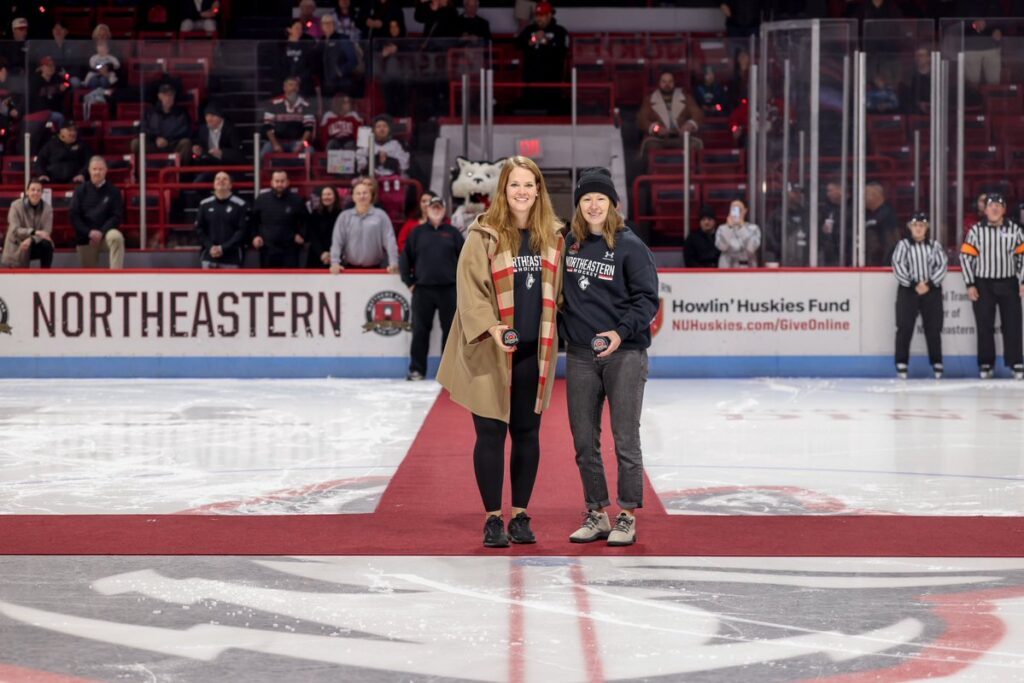 After the NU seniors were honored in a pre-game ceremony and a great rendition of the national anthem by a Northeastern based acapella group (sorry I can’t find the name but they did a phenomenal job), and a ceremonial puck drop from 2 legends of Matthews (Brooke Whitney and Florence Schelling) the game was finally under way.